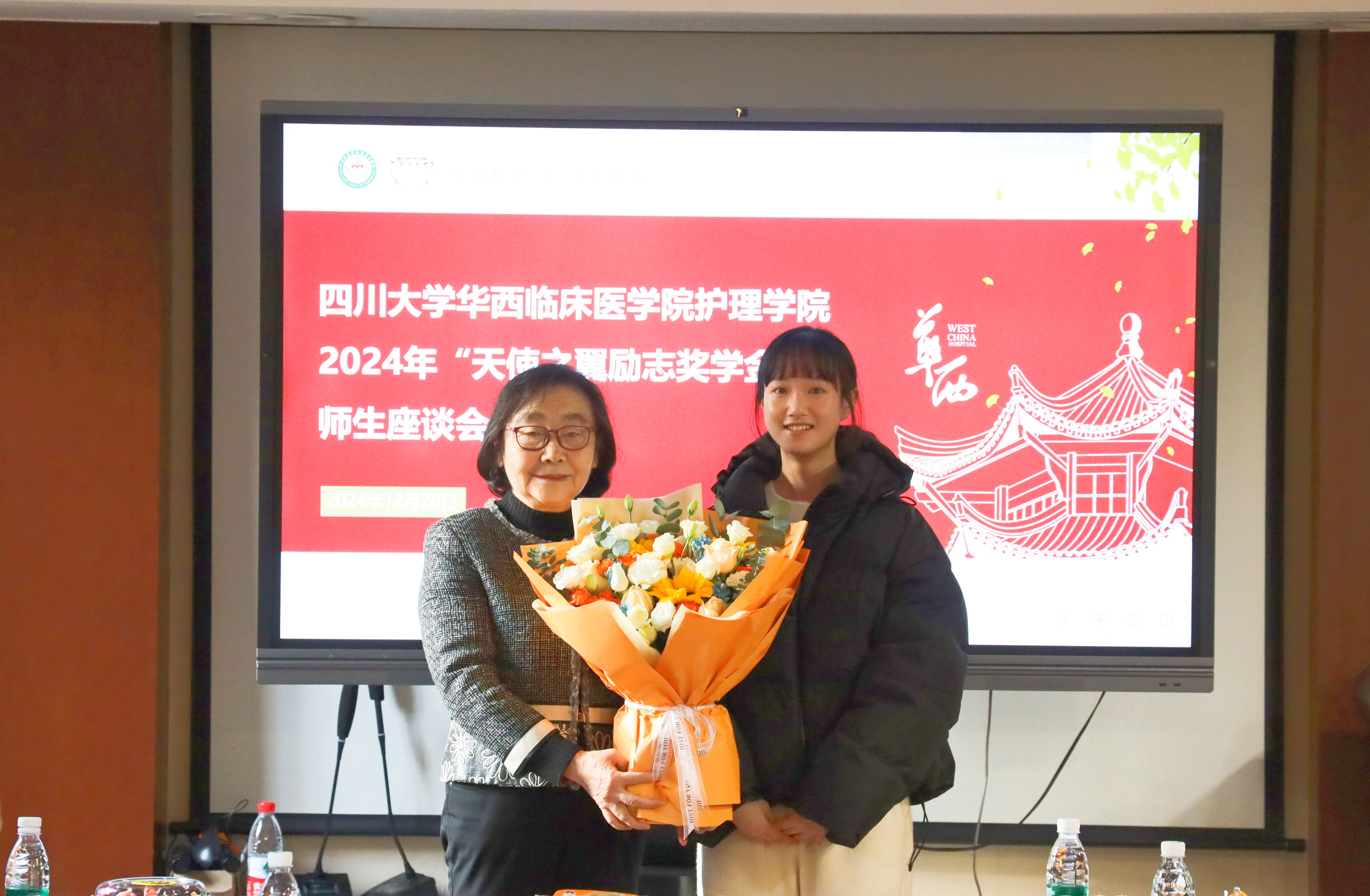 2024级研究生谭佳妮代表获奖学生为成翼娟教授献上鲜花,表达感激之情。
