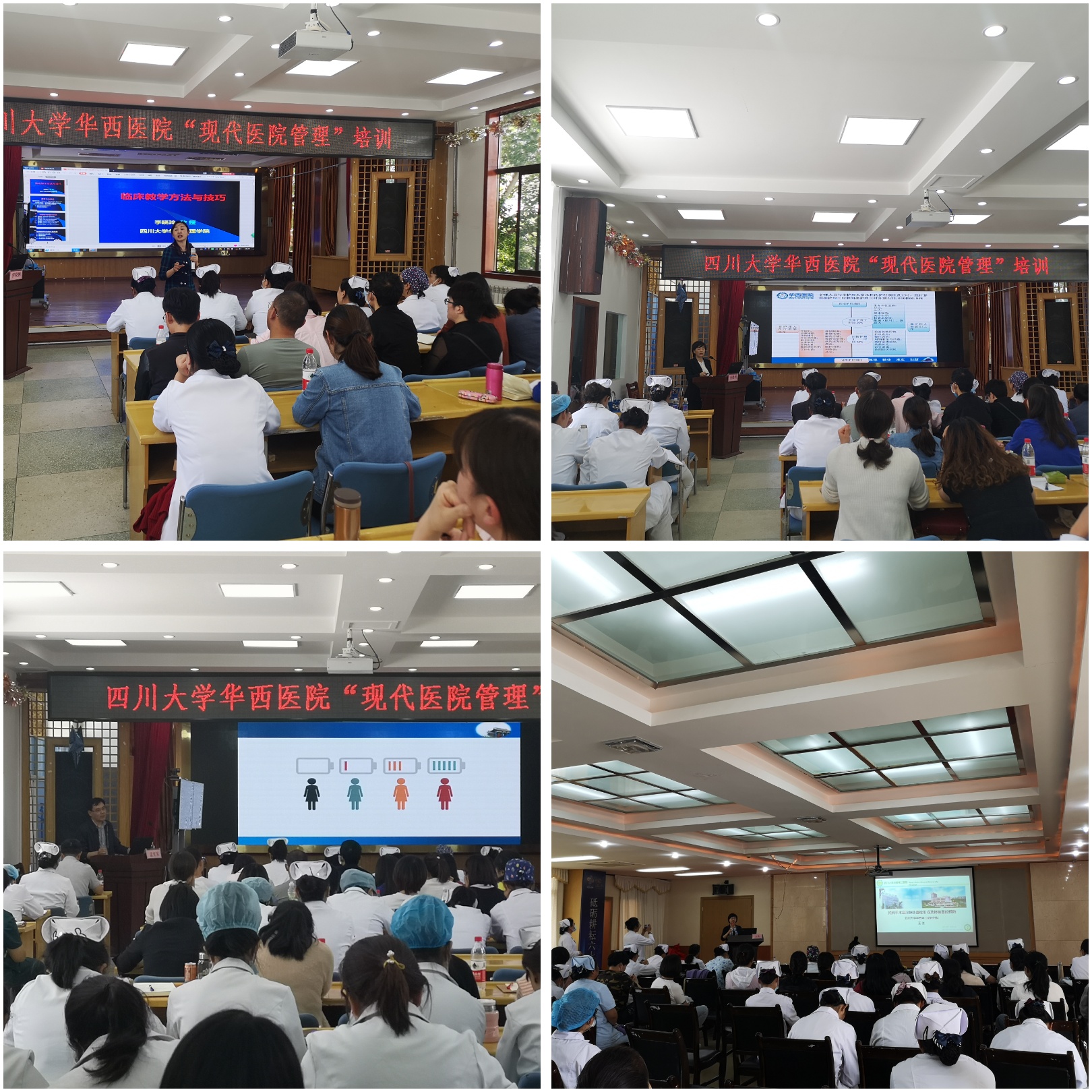 在两场《护理管理与实践培训》的专题讲座上,专家们以“护理科研创新选题与实践”、“卒中识别与院前急救”、“消毒供应中心质量管理与创新发展”、“妇科手术后深静脉血栓形成及肺栓塞的预防”、“危重病人气道管理”、“门诊人力资源配置与管理”、“综合性医院住院患者心理评估”、“临床教学方法”、“护士如何提高终生学习力”为题进行了精彩的授课,全场座无虚席,大家学习热情高涨,学员们纷纷表示专家们的授课内容非常实用,拓宽了思路、启发了思考,激发了他们在各自的护理领域去创造更多的价值。