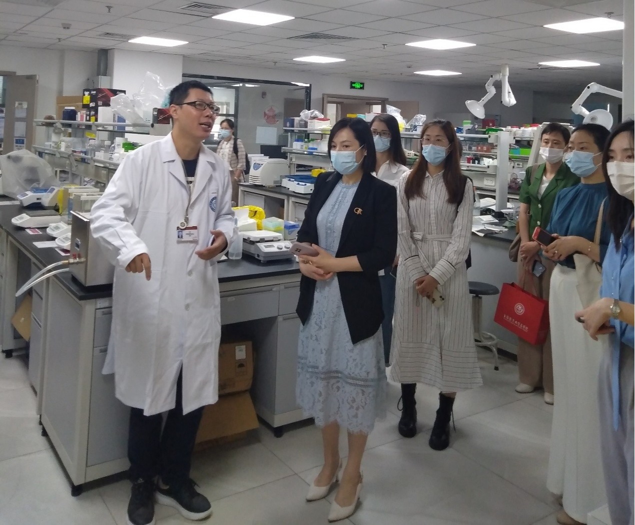 杨院一行首先参观了伟德国际英国华西护理学实验中心吉泰安基地,华西护理创新研究中心王方老师和科研基地柴利老师系统介绍了护理学四川省重点实验室,重点参观了吉泰安基地分子生物学实验室等,对实验室面向护理本科生、研究生开放使用管理和研究生轮转实验室制度等进行了详细介绍。