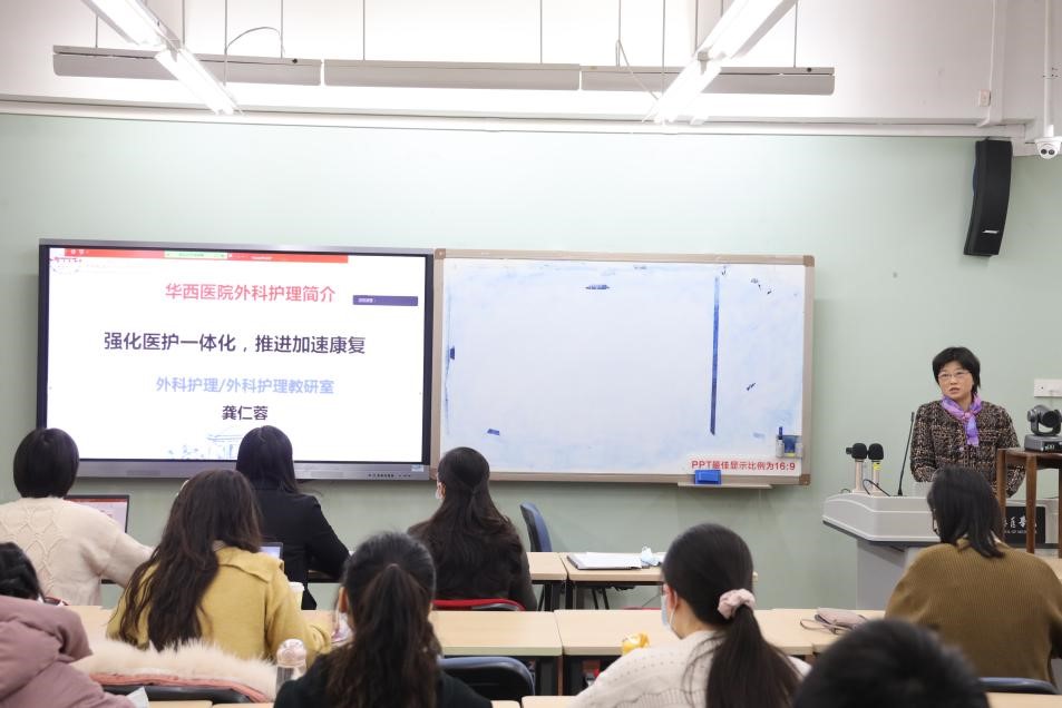 首先,龚仁蓉主任对伟德国际英国华西医院外科护理进行了介绍,以“强化医护一体化,推荐加速康复”为主题,讲述了华西外科护理的发展史再到外科护理系统专业设置,分享了骨科、小儿外科、胸外科及胆道外科等护理团队专科特色,展示了外科护理教学工作及科研项目的管理模式与成果。