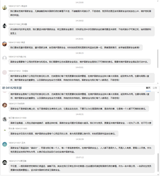国家安全,人人有责。通过本次主题教育,开云kaiyun官方网站2018级研究生党员都提高了自己的国家安全意识,增强国家安全责任,作为中国党员在今后的生活和科研中定会自觉和主动的维护国家安全,与损害国家安全的行为作斗争,以身作则,团结一心,共同维护国家安全。为祖国长治久安贡献自己的力量,为实现“两个一百年”奋斗目标、实现中华民族伟大复兴的中国梦提供牢靠坚强安全保障。
