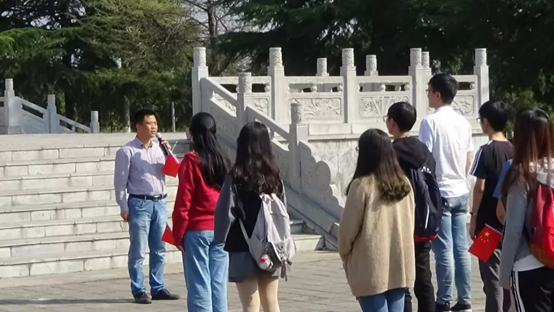 之后,全体党员面对党旗庄严宣誓。宣誓结束后,张思超代表全体学生党员在纪念碑前向祖国告白。他说,大学生党员要坚定理想信念,不忘初心、牢记使命,继承先烈遗志,传承红色基因;要珍惜韶华,奋斗青春,时刻磨练意志、锤炼本领,勇做担当民族复兴大任的时代新人,为祖国社会主义现代化建设奉献出自己的一份力量。