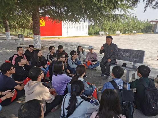 本次爱国主义教育活动,机电院邀请到了两位革命老战士——参加抗美援朝战争的王志恒老人和参加解放战争的苏国正老人。两位老人在几位党员的搀扶下坐在石凳上,其他的党员们便席地而坐,仔细聆听老兵们历经的革命往事。