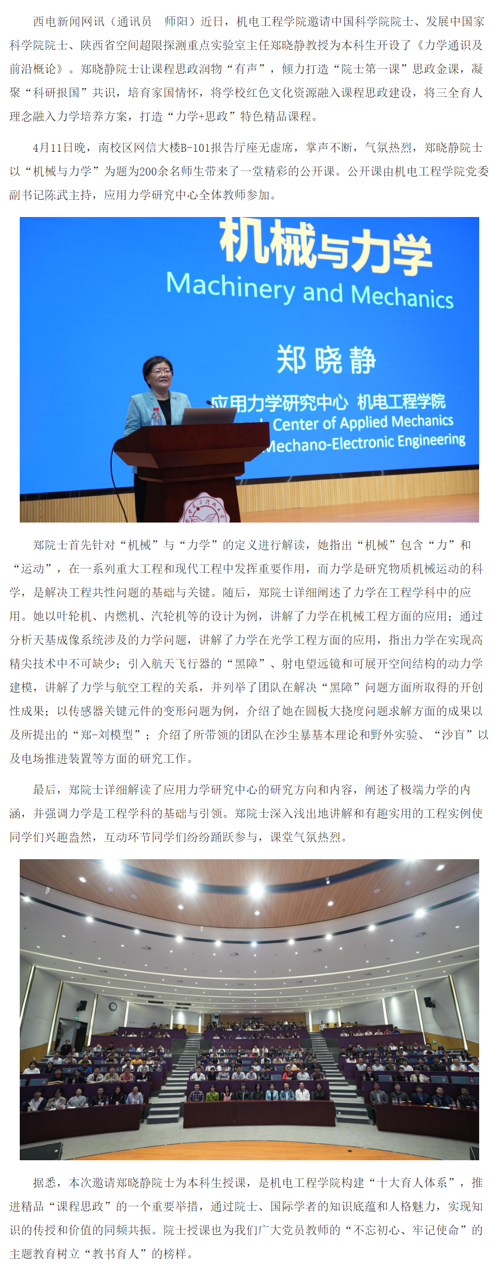 中国科学院院士郑晓静为本科生讲授力学通识课