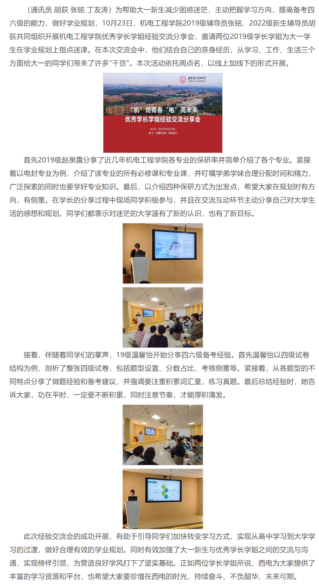 “机”昂青春,“电”亮未来|开云kaiyun官方网站优秀学长学姐经验交流分享会