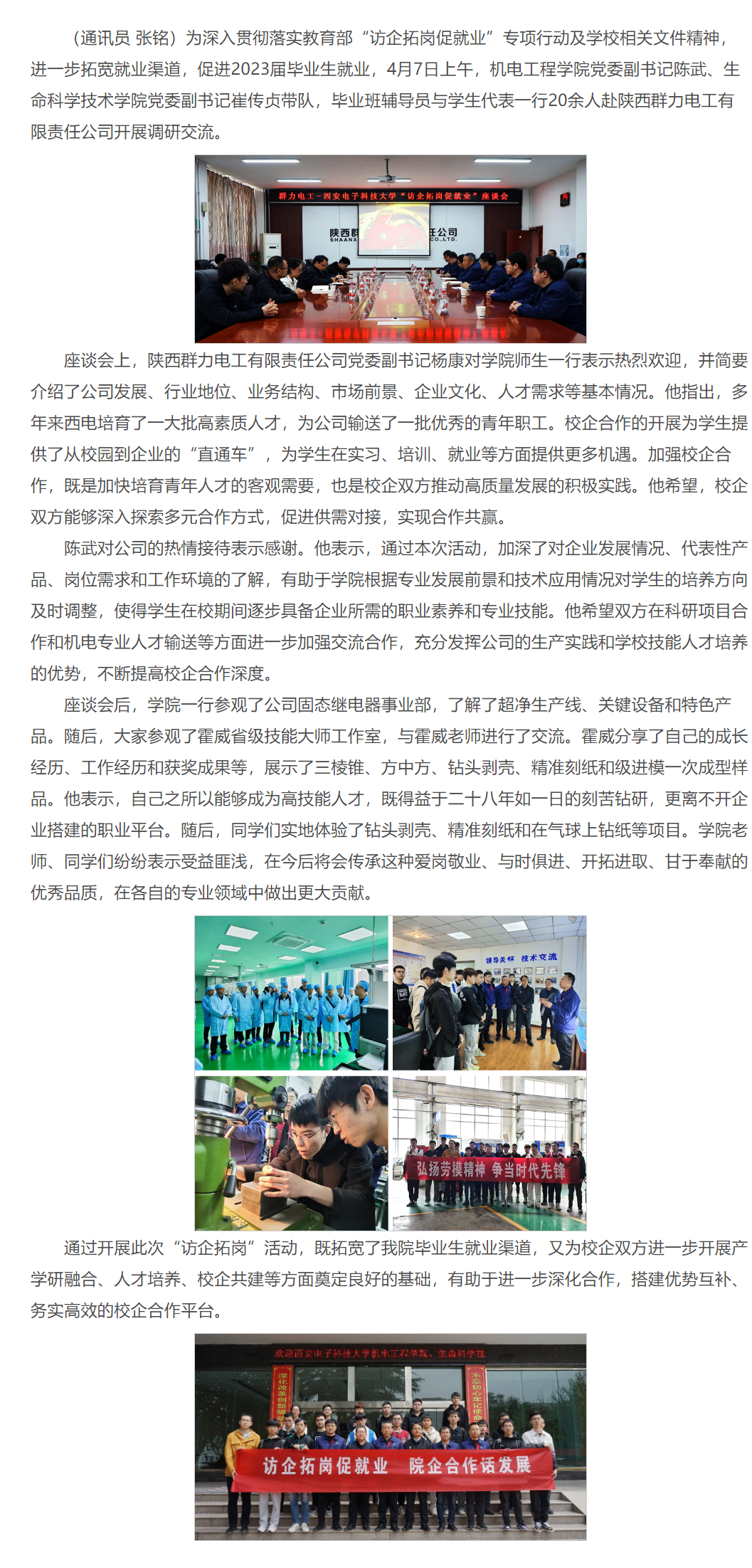 开云kaiyun官方网站赴陕西群力电工有限责任公司开展访企拓岗专项行动