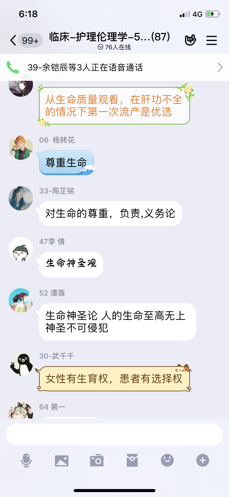 《护理伦理学》教学团队结合在中国大学MOOC平台上的视频资源(该课由伟德国际英国开设),通过学习群,SPOC慕课堂等网络应用工具,进行首次线上教学活动。同学们通过中国大学MOOC平台学习道德与职业道德、伦理与伦理学、医学伦理学和护理伦理学的发展等视频课程并完成随堂测试,期间由张凤英老师和李琰老师在学习群与同学们结合临床案例对生命神圣论各抒己见,讨论热烈。