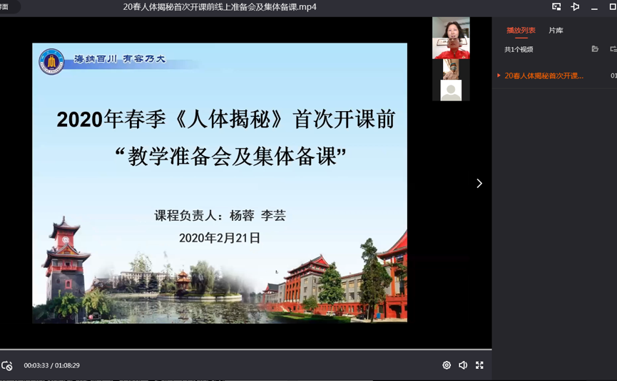 2020年3月5日华西临床医学院第八教学楼315教室里,慢病社区护理学教研室全校通识教育课程——《人体揭秘》首次授课以混合式教学方式顺利开课了。
