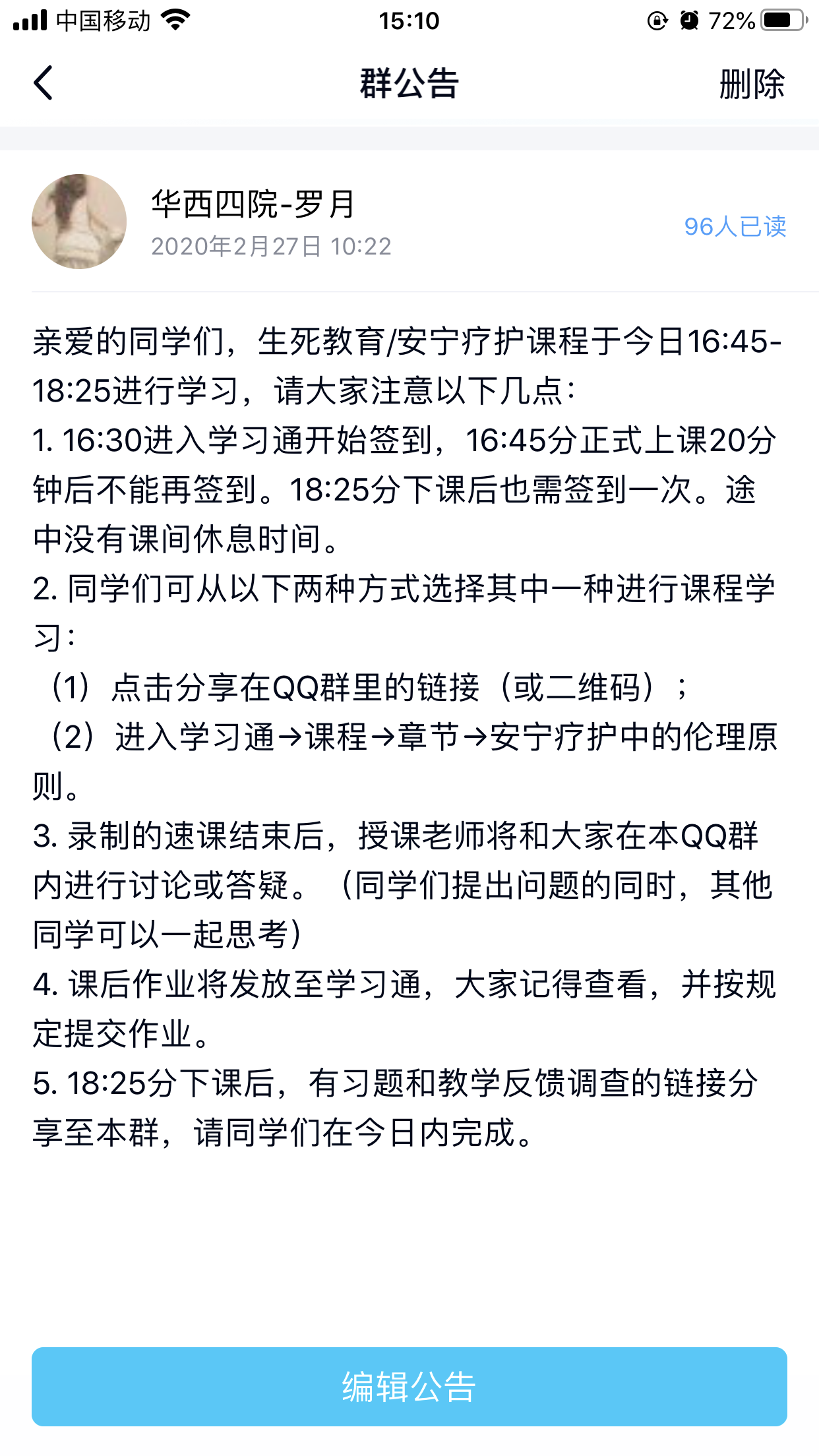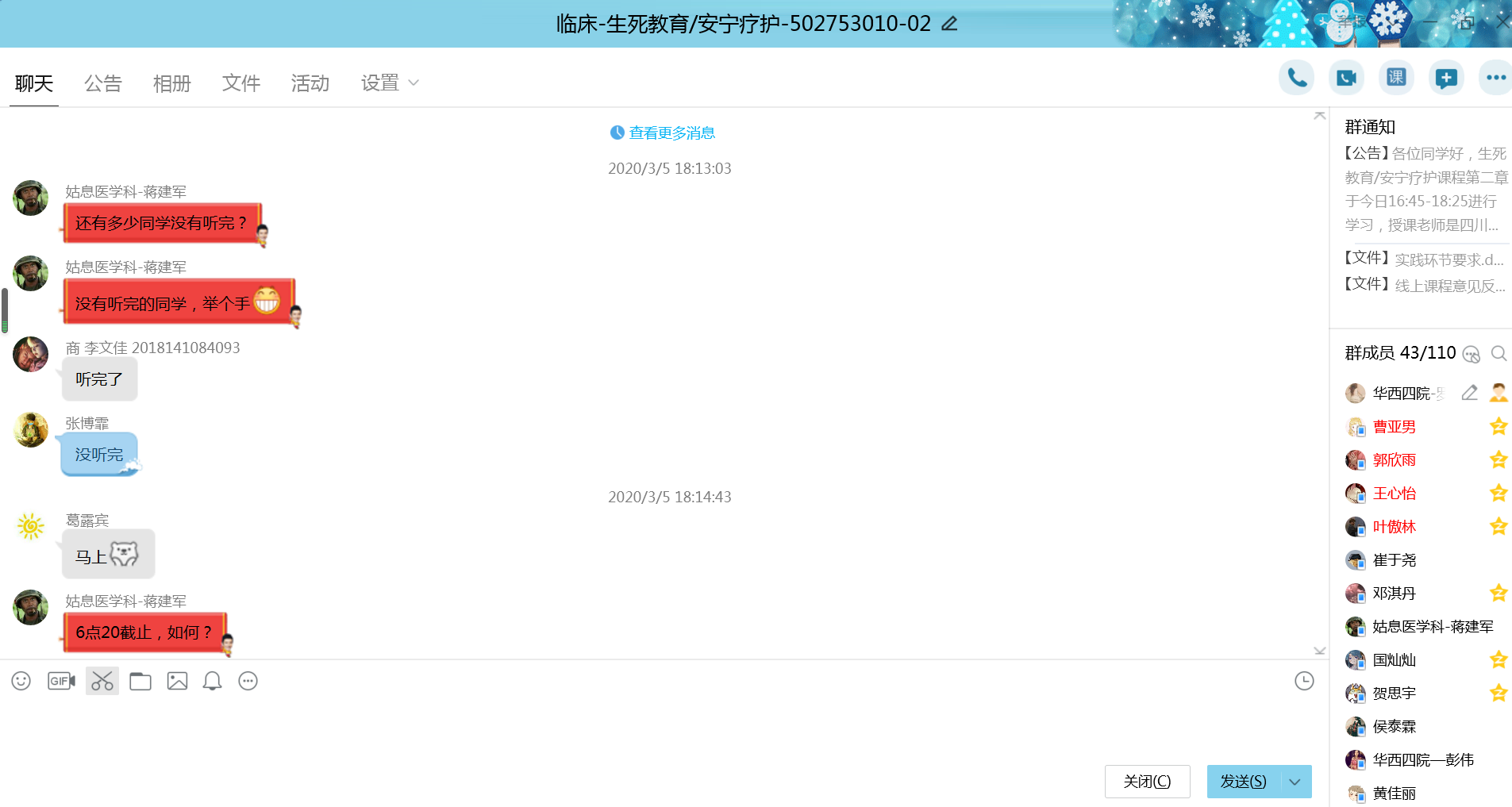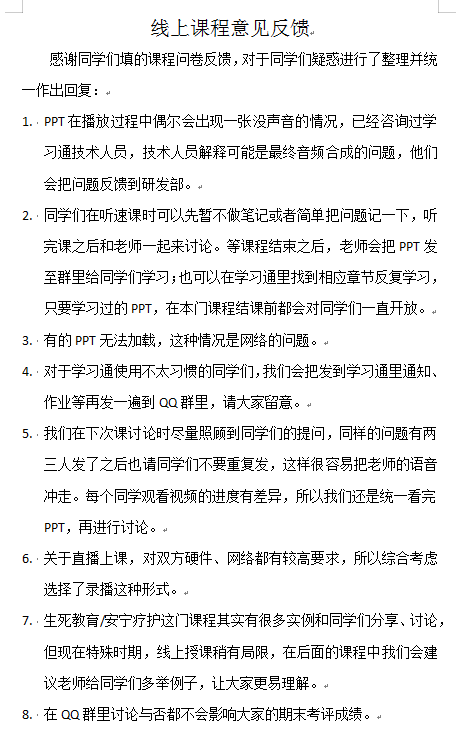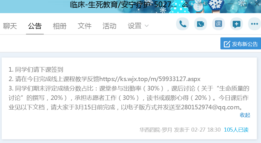 自疫情发生以来,安宁疗护教研室认真贯彻落实教育部、省教育厅及学校“停课不停教、停课不停学”的要求,积极应对疫情对新学期教学工作的影响。