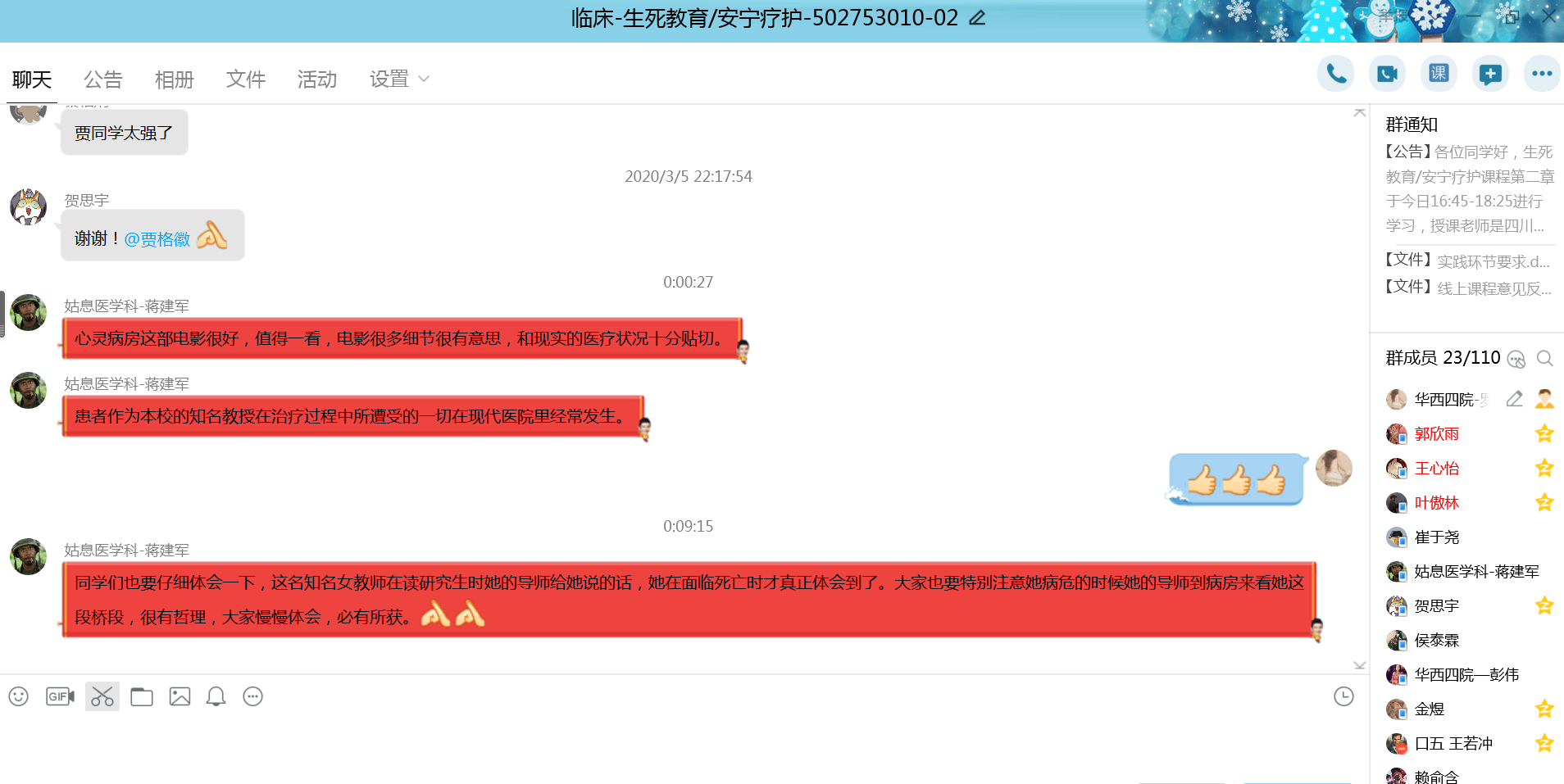 生如夏花之绚烂,终如秋叶之静美-安宁疗护教研室的在线课堂