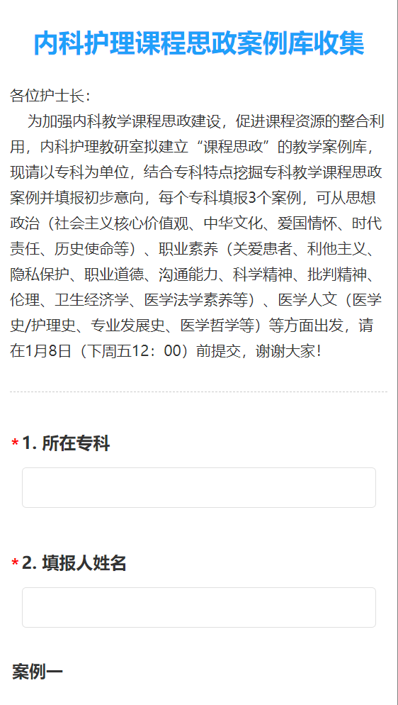 课程思政是高校人才培养的重要举措。2020年教育部《高等学校课程思政建设指导纲要》中明确要结合专业特点分类推进课程思政建设,将课程思政融入课堂教学建设全过程,提升教师课程思政建设的意识和能力。在此背景下,内科护理学教研室高度重视专业教育中课程思政的融入,将课程思政建设作为近期教研室工作重点,以项目为抓手,通过推进内科护理学课程思政建设项目,以期提高全体教师对课程思政的认识和理解,将思政元素融入专业教育中,系统规范的开展课程思政。