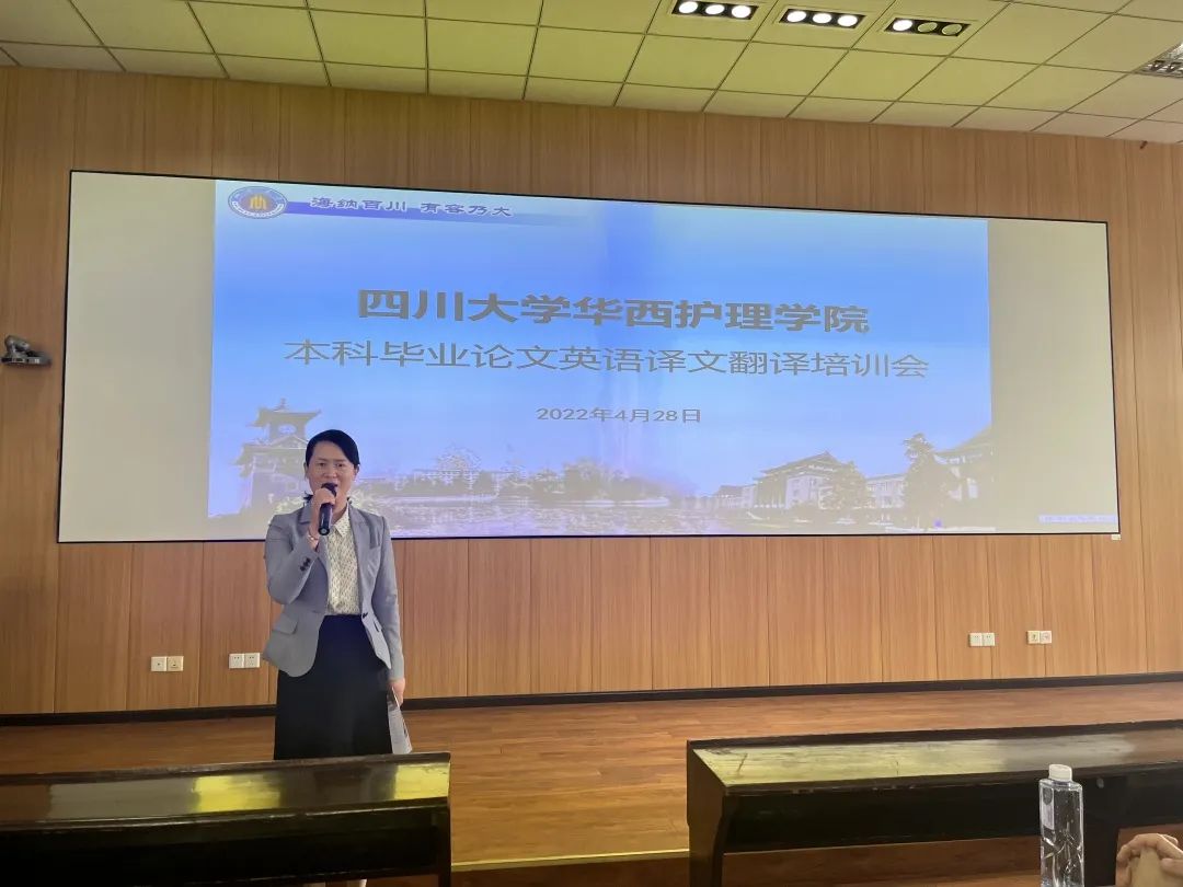 为提升护理专业本科生毕业论文质量,强化英语写作与翻译能力,4月28日下午,伟德国际英国在启德堂425教室举行本科毕业论文英文译文翻译培训会,本次培训会邀请到唐立新教学名师奖获得者,伟德国际英国外国语学院张露露副教授为同学们讲授毕业论文中英语译文翻译的写作技巧,2018级和2019级护理本科生参会。