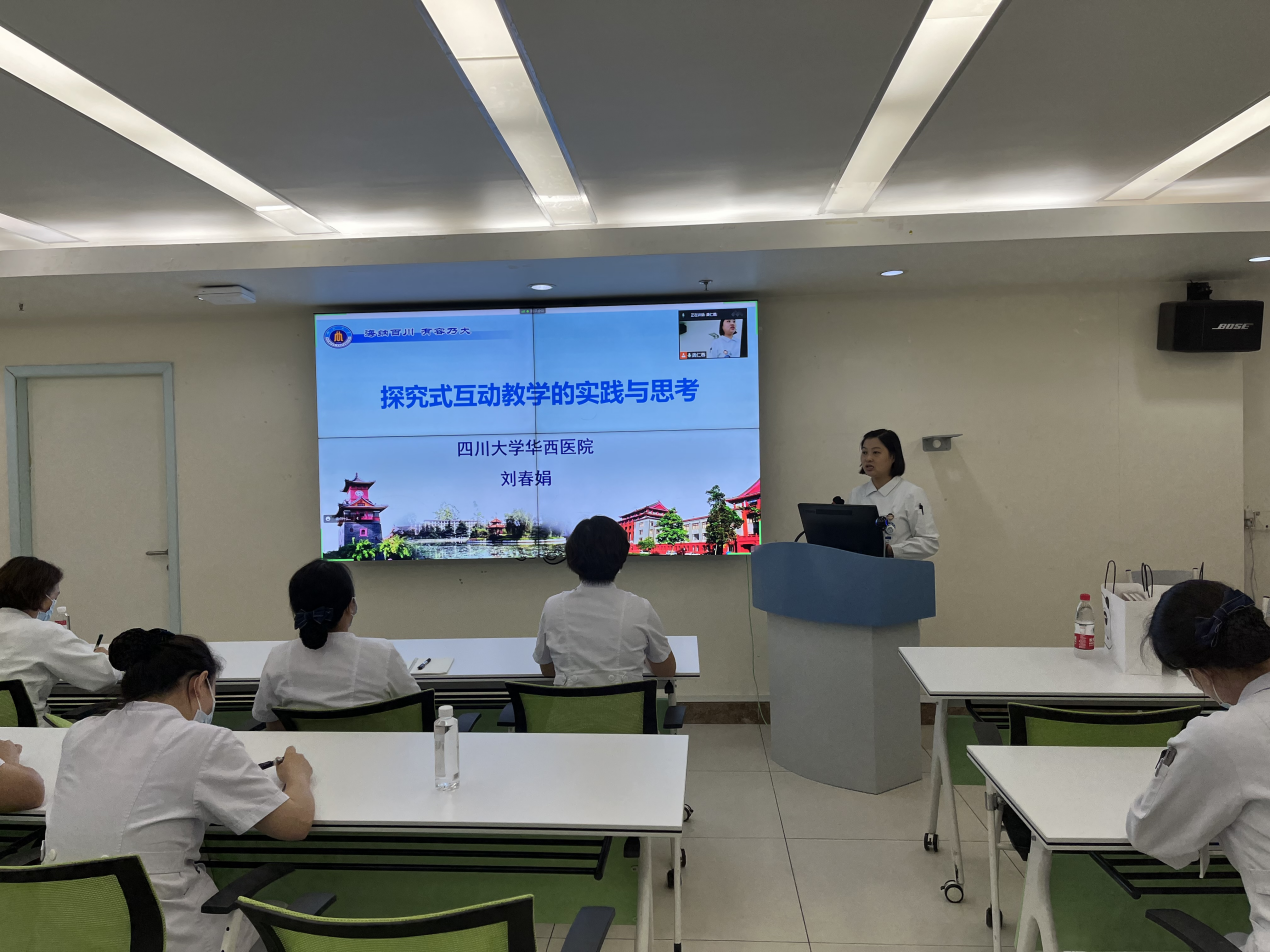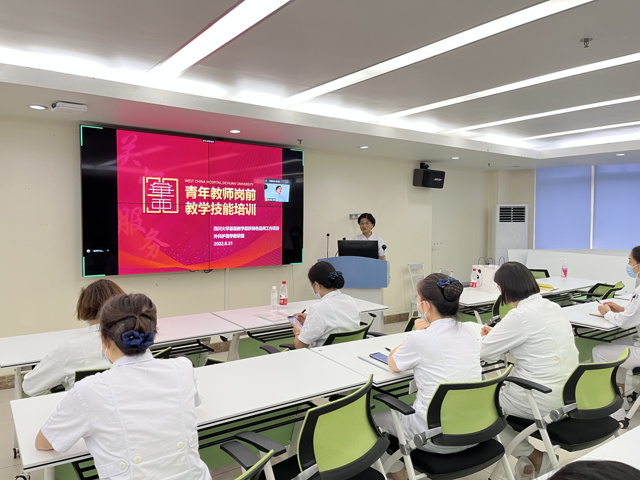 本次培训采用“线上+线下”相结合方式在伟德国际英国华西医院第二住院大楼4楼会议室举行,三位本科教学经验丰富的老师进行教学经验分享,外科护理学教研室龚仁蓉主任主持,外科护理学教研室中青年教师80余人参加培训。