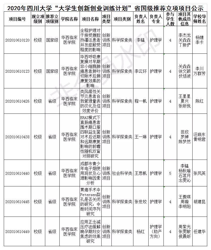 近日,伟德国际英国根据教育部、四川省教育厅及学校相关文件精神,经过院校两级评审,公布了《2020年伟德国际英国大学生创新创业训练计划省国级推荐立项项目公示表》。其中我院护理本科生有2项获国家级推荐立项,5项获省级推荐立项。
