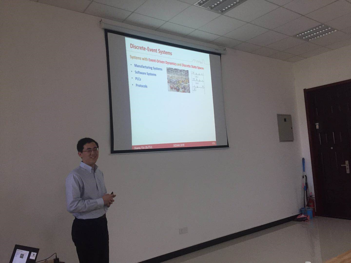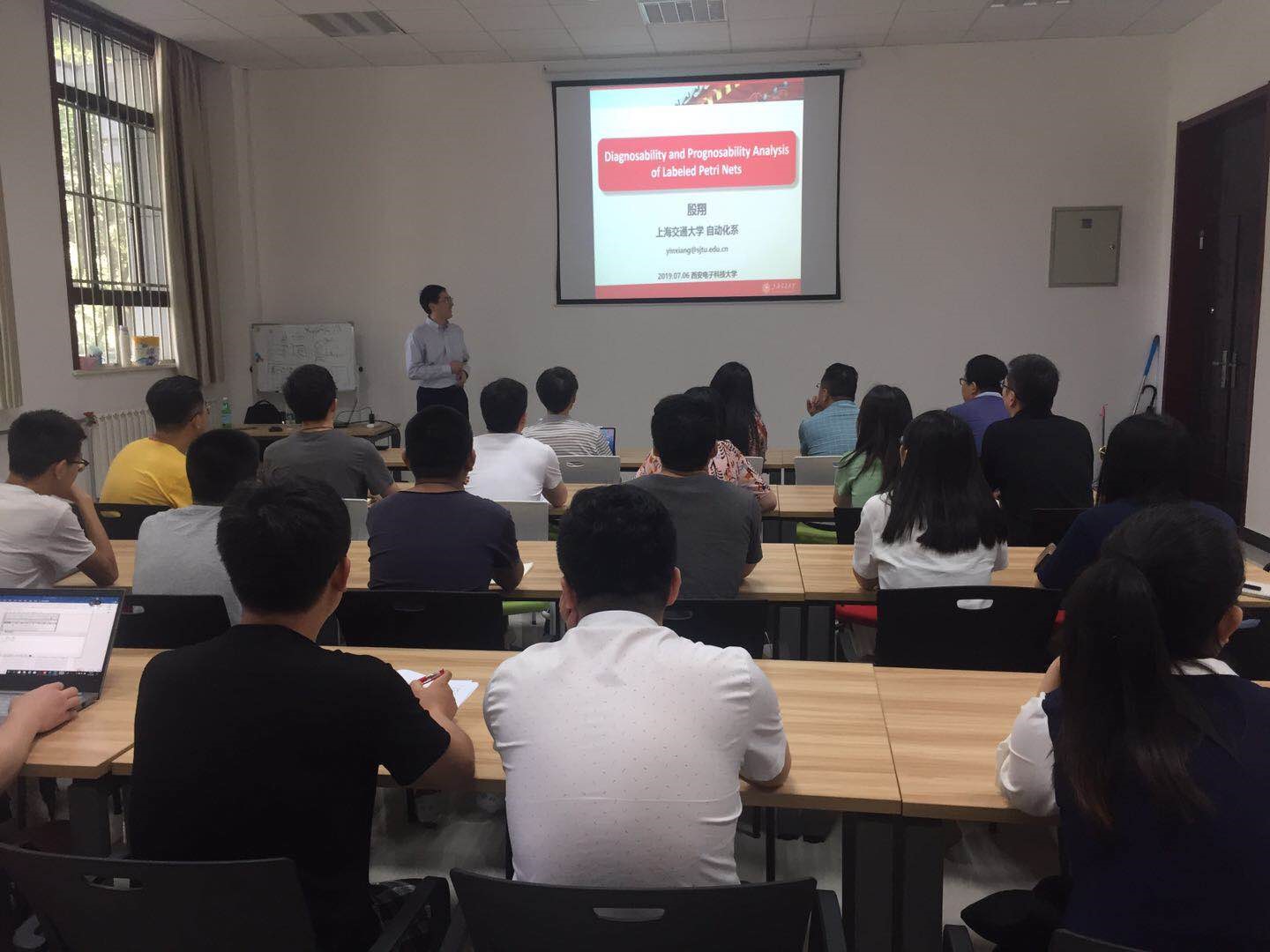 殷翔教授从离散事件系统的应用背景和Petri网讲起,介绍了Petri网的建模以及分析优势、Petri网的决策问题等。重点介绍了基于Petri网的故障诊断和预测方法,深入浅出的介绍了相关领域最新的研究进展。报告由开云kaiyun官方网站李志武教授主持。殷翔教授严谨治学态度给大家留下了深刻的印象,其报告内容引起了在场师生的踊跃提问,殷教授对于学生的提问都进行了细致耐心回答,对在场师生今后的科研工作有很深的启发。
