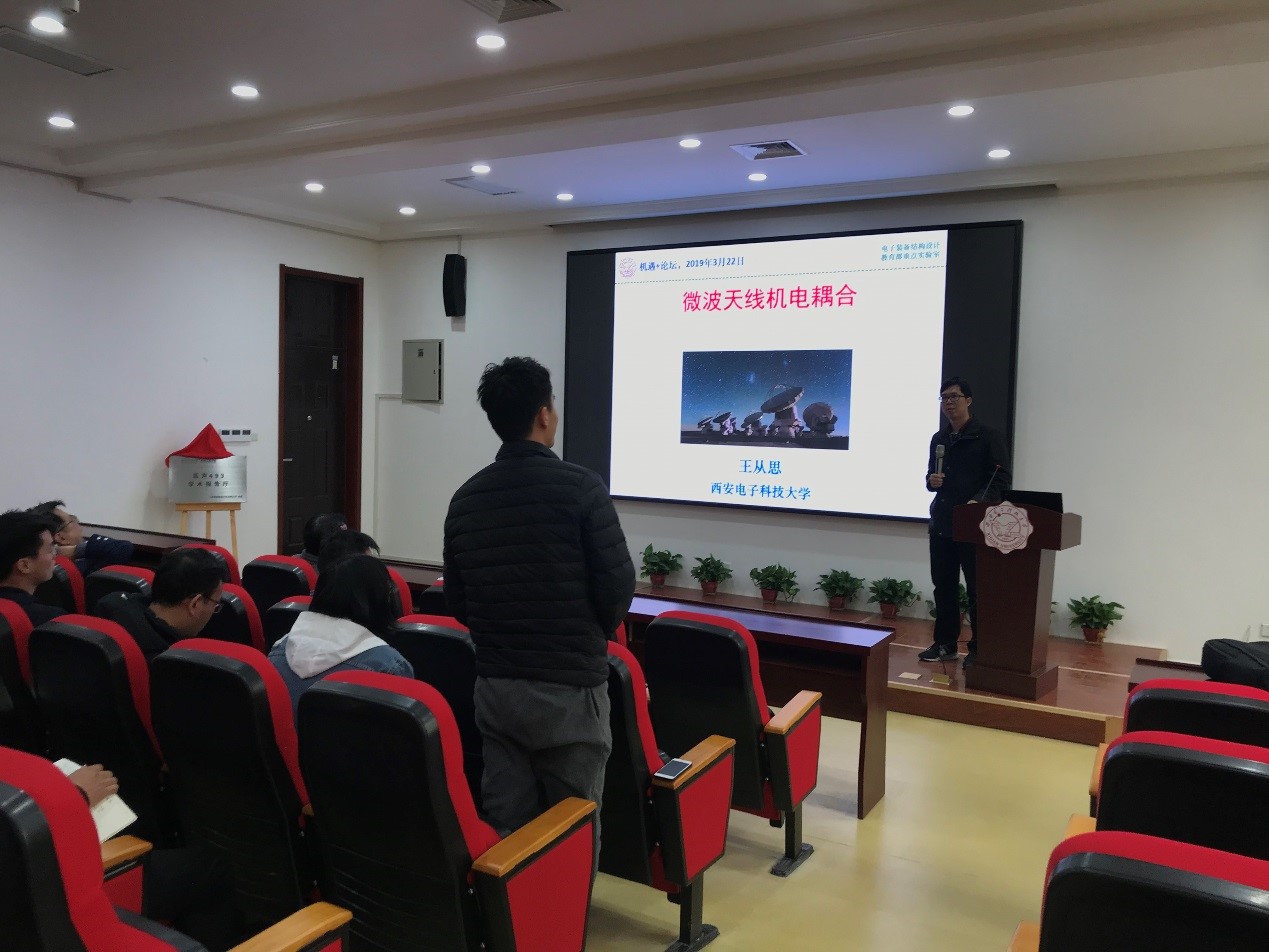 随后,开云kaiyun官方网站科研副院长王从思教授作为本次“机遇+”系列论坛的发起者也是首次报告人,在本次的前沿论坛中,为大家带来了题为《微波天线机电耦合》的精彩学术报告。王教授梳理了微波天线机电耦合的研究现状与发展方向,介绍了机电耦合理论在不同领域的工程应用情况,并重点介绍了开云kaiyun官方网站电子装备结构设计教育部重点实验室在机电耦合领域的研究进展。最后,针对报告中微波天线机电耦合的相关问题,在场师生与王教授进行了热烈的交流讨论。