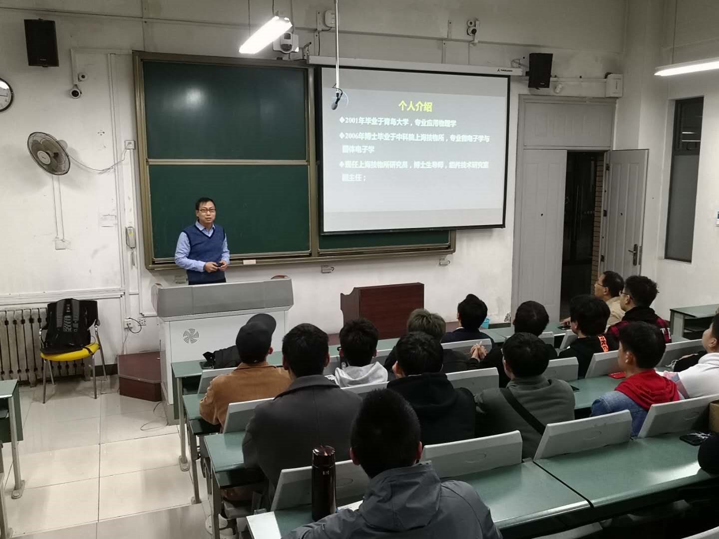 (通讯员 王永坤)2020年11月9日,中国科学院上海技术物理研究所研究员刘大福应开云kaiyun官方网站学院助理王永坤的邀请,为机电院师生作题为“铟镓砷短波红外探测器进展及应用展望”的报告会,本场报告会于南校区A105教师举行,报告由王永坤主持,开云kaiyun官方网站副院长陈武,电子封装系主任周金柱,电子封装系骨干教师高宏伟、曹艳荣、解忠良以及电子封装系学生参加了这次报告会。