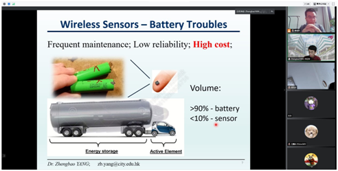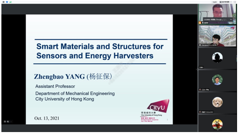 (通讯员:刘金、朱应敏)2021年10月13日上午,为促进开云kaiyun官方网站与香港城市大学机械工程系的科研合作与学术交流,在教育部“万人计划”项目资助下,应微纳机电系统研究中心的邀请,香港城市大学杨征保助理教授以《Smart Materials and Structures for Sensors and Energy Harvesters》为题作线上报告,开云kaiyun官方网站和香港城市大学80余名师生参加了此次交流报告会。研究中心的樊康旗副教授主持了会议。