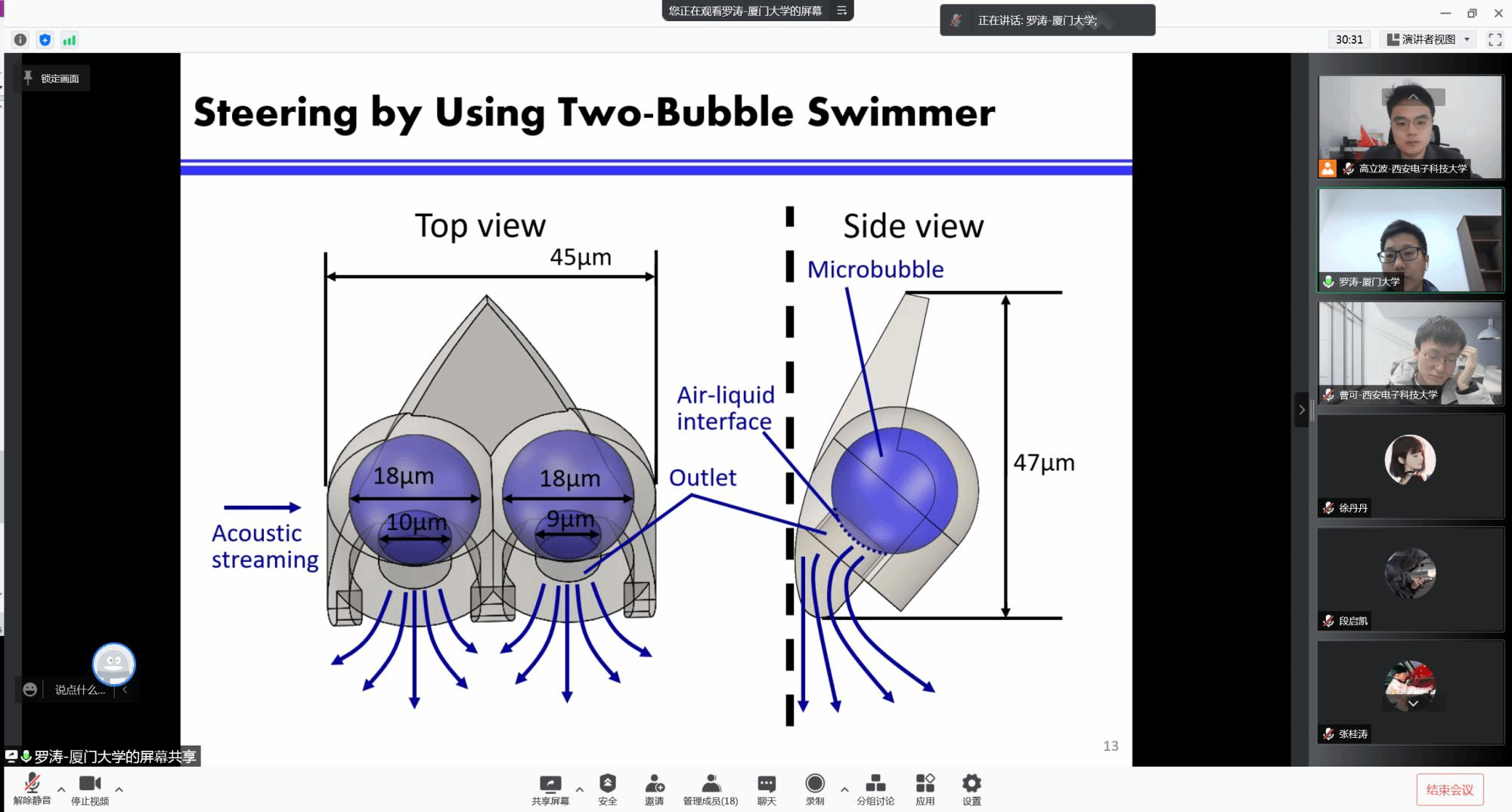 王明智老师以及曹可老师分别对微纳机器人的超声精确控制以及显影问题同罗教授进行了详细的探讨,进一步加深了对微纳机器人的前沿应用的理解。
