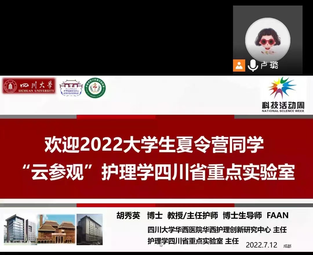 优秀学长代表韩颜庭博士后介绍了护理+材料交叉学科及前沿研究;刘颖博士分享了在川大华西校园学习、生活期间的收获和感想,鼓励学弟学妹勇敢逐梦。此次活动增进了营员与导师之间的了解,也对华西护理学科有了更深的认识。