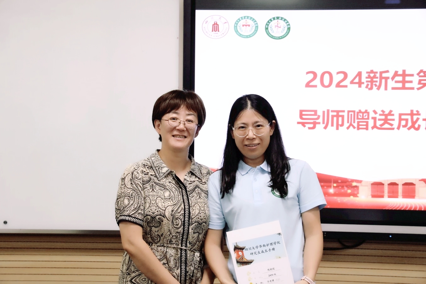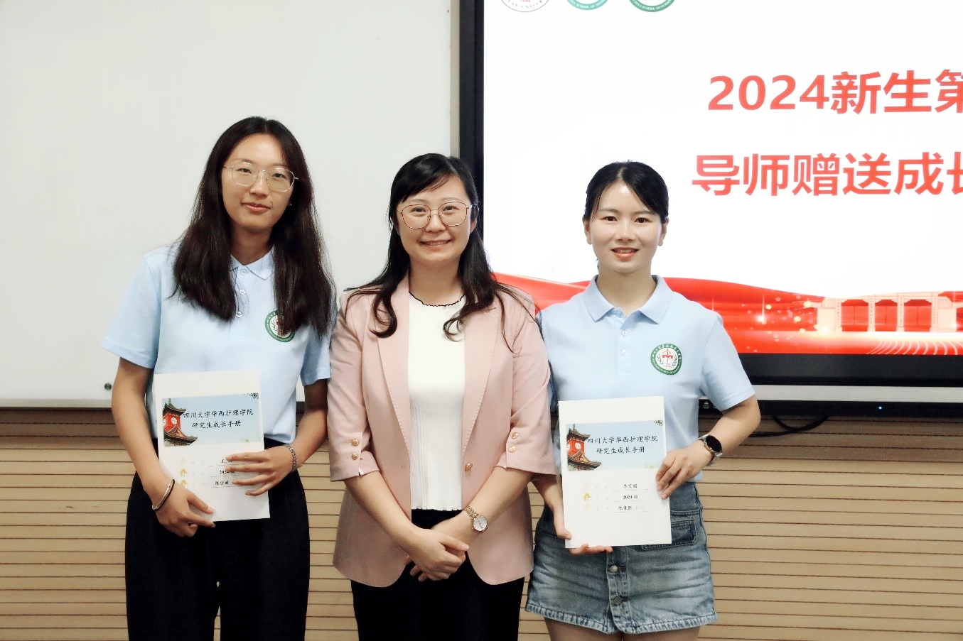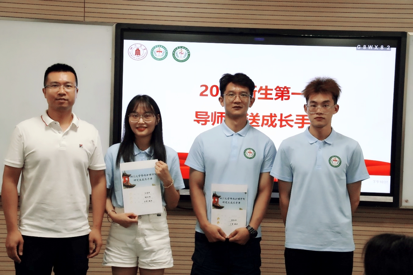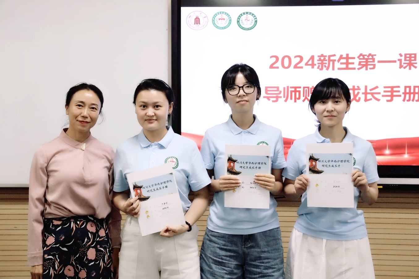 在师生互动环节,每一位新生进行了自我介绍并述说未来的短期目标和长期目标,研究生导师为每一位学生写下入学寄语并赠送成长手册。