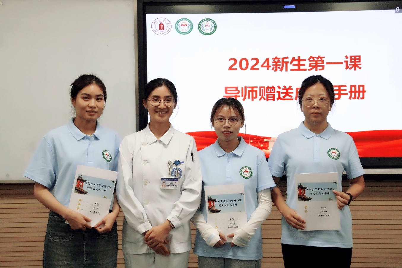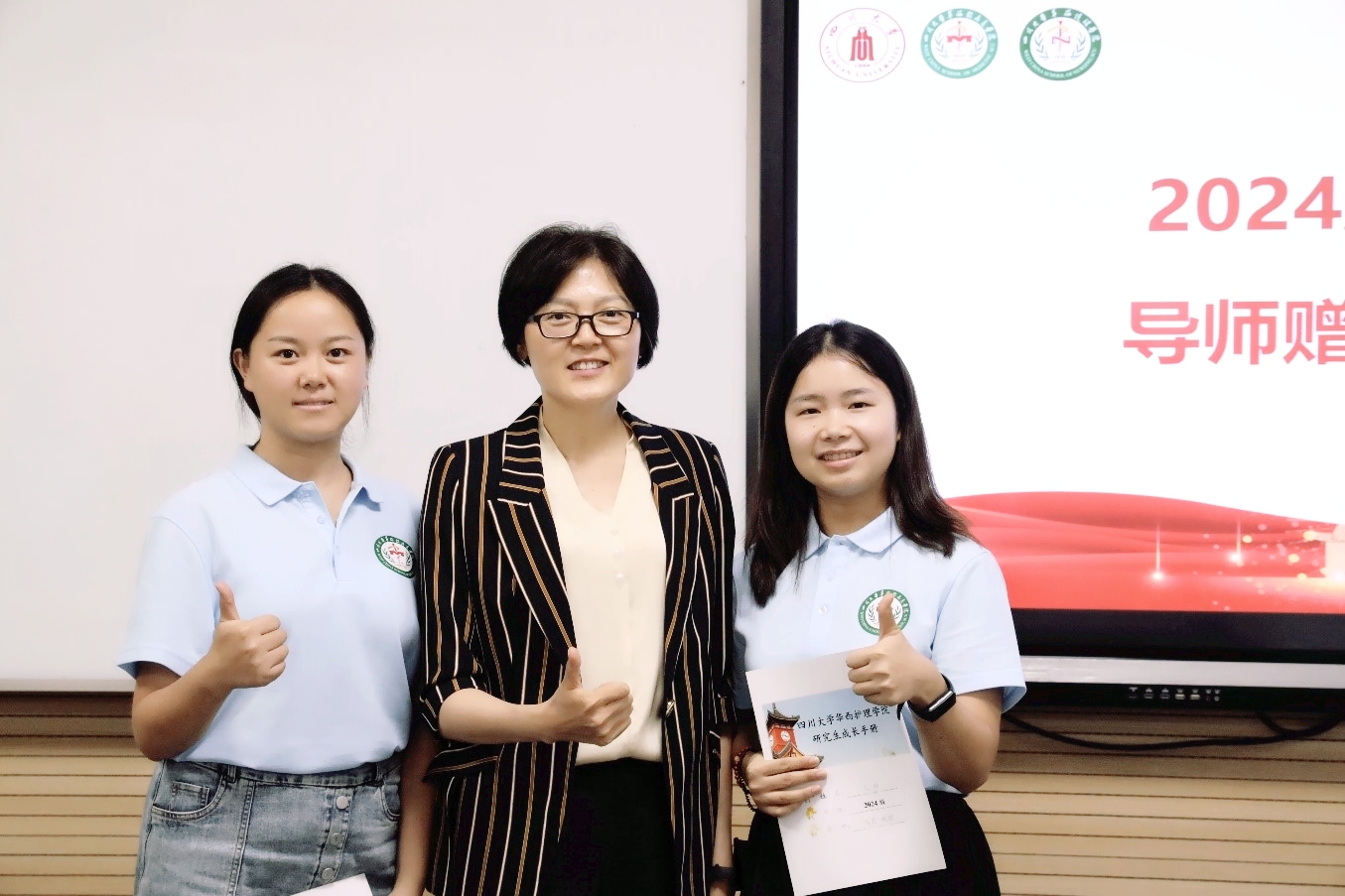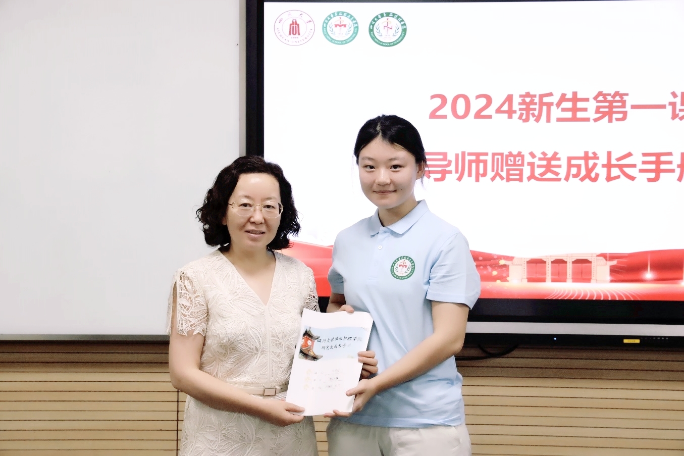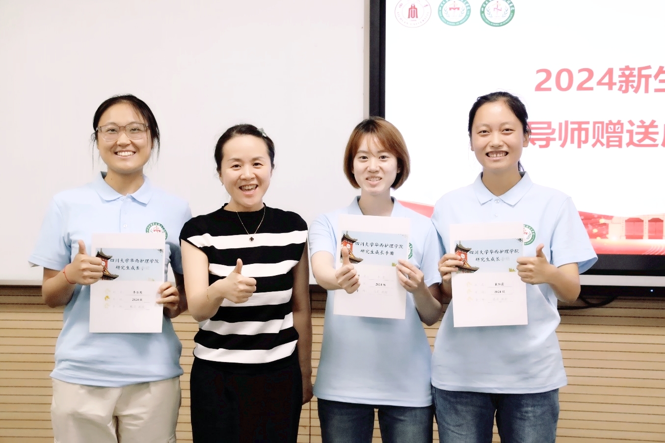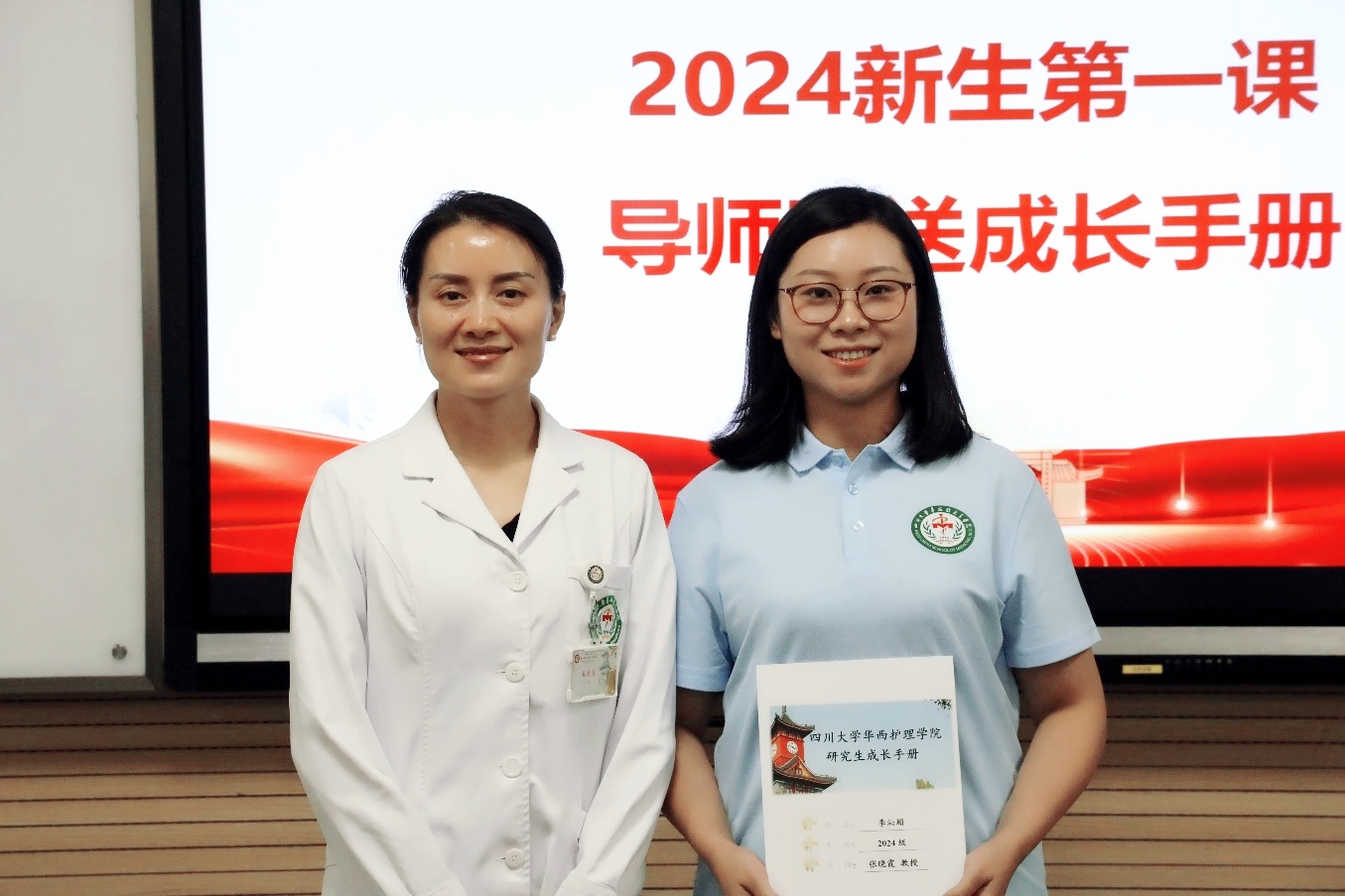 在师生互动环节,每一位新生进行了自我介绍并述说未来的短期目标和长期目标,研究生导师为每一位学生写下入学寄语并赠送成长手册。