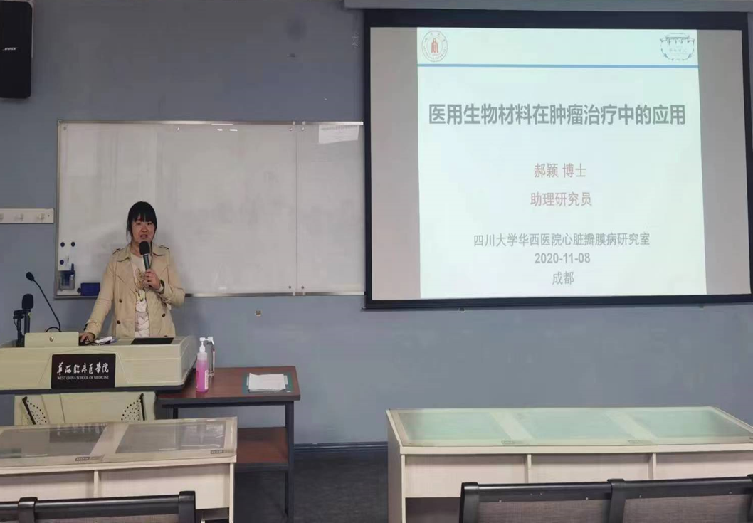 伟德国际英国华西医院心脏瓣膜病研究室郝颖助理研究员进行了《医用生物材料在肿瘤治疗中的应用》主旨授课。