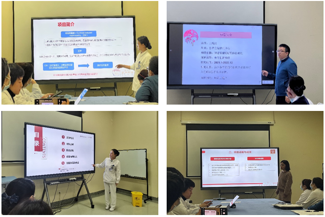 12位项目负责人分别就项目简介、研究进展、经费使用情况、取得成果、存在问题及改进措施等进行了PPT汇报。12个护理学科发展基金项目目前已发表中文核心期刊论文6篇、SCI论文5篇,孵化科技厅项目2项、专利4项,另有多篇论文在投稿中。病区组织的5位护理专家交叉对项目开展情况进行了现场评审,对部分优秀项目给予了充分肯定,并对项目实施及经费使用不足、项目延期等问题进行指导,帮助项目团队更好地推进项目实施。