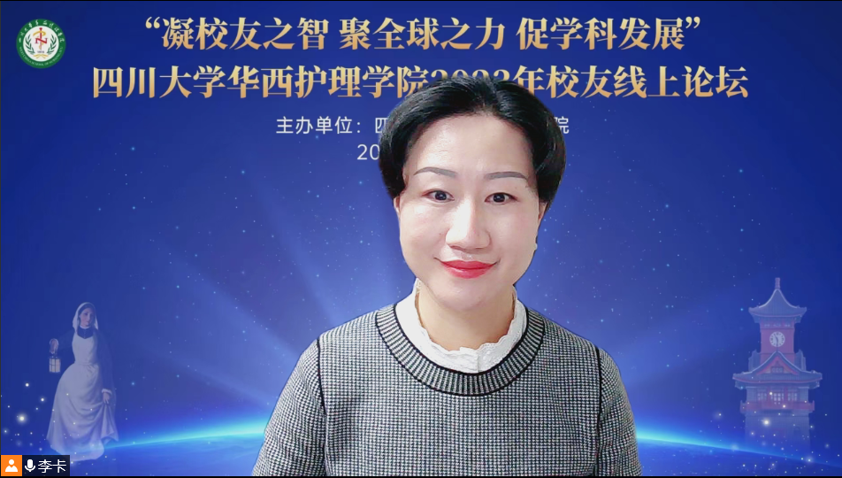 校友会会长李卡教授以“历久弥新,共赴明时”为题,从思政建设、人才培养、科学研究、对外交流、学科保障、一流护理等方面向华西校友介绍了伟德国际英国华西护理学科建设的历史、现状与未来。