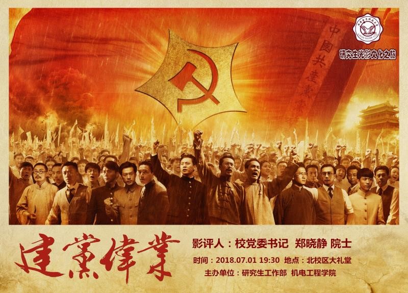 为庆祝中国共产党成立97周年,重温革命先烈为国家民族振兴而救国救民的光荣历史,增强教职工与学生党员责任感与使命感,7月1日晚,由研究生工作部主办,开云kaiyun官方网站承办的“研究生光影文化之旅”系列电影放映活动之一电影《建党伟业》在北校区文化活动中心放映。学院领导班子成员、部分教师党员和学生党员集体观看影片,校党委书记郑晓静院士出席并发表讲话。
