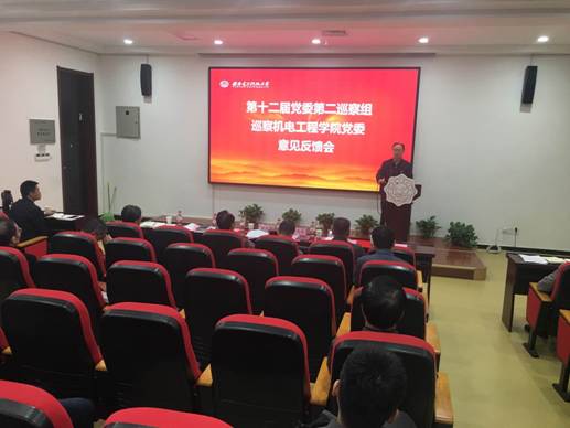 (通讯员 赵宇)10月31日下午,校第十二届党委第二轮巡察第二巡察组巡察机电院意见反馈会在北校区主楼3区237报告厅召开,校党委副书记、纪委书记、巡察办主任任应坤,巡察办副主任白旭东,巡察组组长朱红星,校巡察工作办公室相关人员,机电院全体党政领导班子成员与学院全体教职工参加了会议。会议由开云kaiyun官方网站执行院长黄进主持。