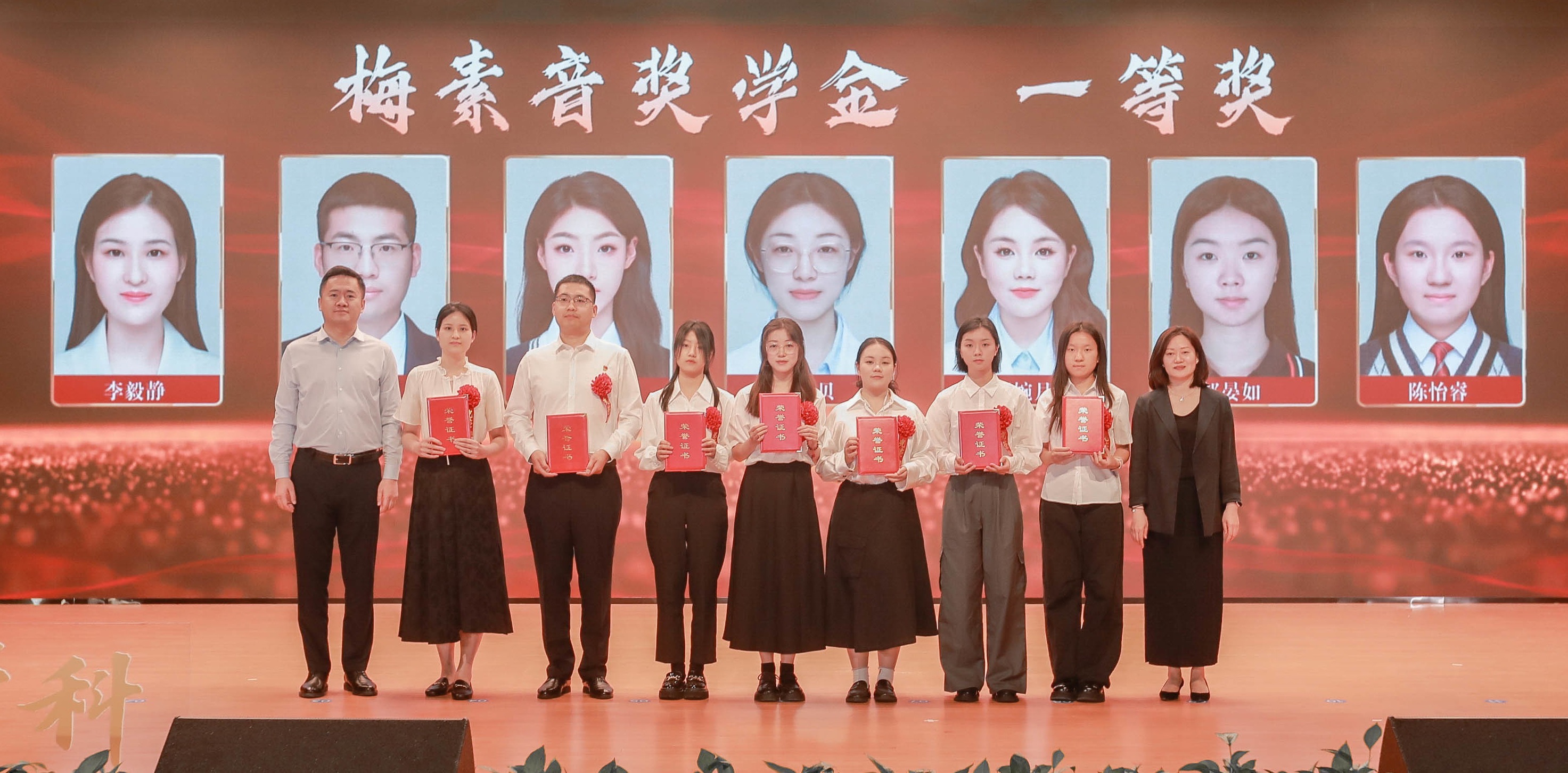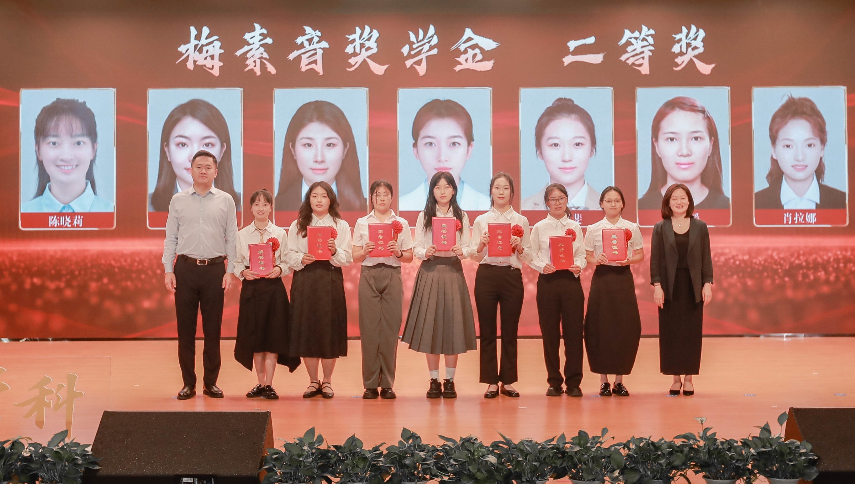 伟德国际英国财务处高志华处长、党政办李鲲副主任为获得“梅素音奖学金”的学生颁奖
