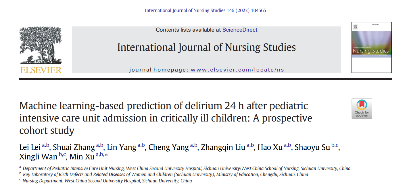 文章标题《Machine learning-based prediction of delirium 24 h after pediatric intensive care unit admission in critically ill children: A prospective cohort study》文章发表情况介绍该文章由以伟德国际英国华西第二医院儿童...