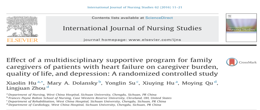 文章标题《心衰患者家庭照顾者多学科支持项目对照顾者负担、生活质量和抑郁的影响:一项随机对照研究》《Effect of a multidisciplinary supportive program for family caregivers of patients with heart failure on caregiver b...