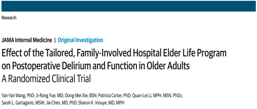文章标题《家庭参与的个体化非药物干预方案能有效预防老年人术后谵妄,维持躯体及认知功能——一项随机对照研究》《Effect of the Tailored, Family-Involved Hospital Elder Life Program on Postoperative Delirium and Functio...